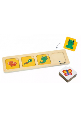 Un jeu simple et amusant de la collection Eduludo pour apprendre à se repérer dans l’espace. Pour reproduire la photo, l’enfant doit placer correctement les figurines sur le plateau. Où est la girafe, devant ou derrière l’éléphant ? À droite ou à gauche ? Les solutions sont indiquées au dos des cartes.