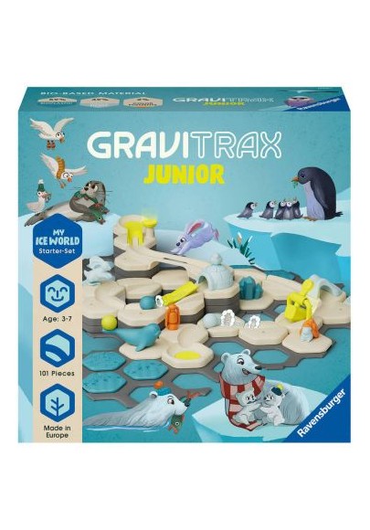 Avec le GraviTrax Junior Starter Set L Mon Arctique, les garçons et les filles de 3 ans peuvent s'immerger dans le monde de l'Antarctique. L'ensemble contient tout pour commencer à construire tout de suite. Avec un grand nombre d'éléments et de figures animales de bois-bioplastique, les enfants à partir de 3 ans découvrent le thème de la crème glacée de près pendant qu'ils décorent et jouent. Le plaisir de construire et de jouer est combiné d'une manière unique.