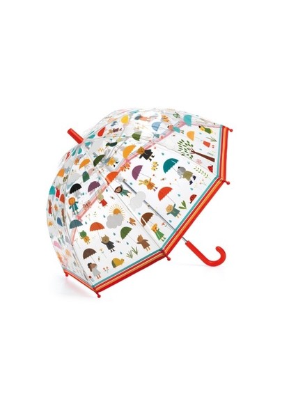 Un parapluie transparent avec de ravissantes illustrations. La structure souple et résistante est en fibre de verre.
