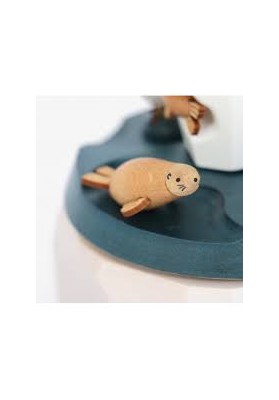 Boite à musique qui représente des phoques, des crabes,des morse et même une moette ! . Ils tourneront autour d'un iceberg