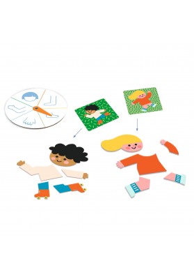 Un tout premier jeu sur le corps pour apprendre et intégrer le schéma corporel. Tête, bras, pied… à nommer et à bien positionner en premier !