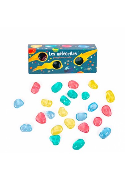 Tels des petits cailloux précieux jaunes, rouges ou bleus, ces météorites phosphorescentes brillent dans le noir pendant 8 heures ! A garder précieusement sous son oreiller, pour s'endormir au milieu de la galaxie…