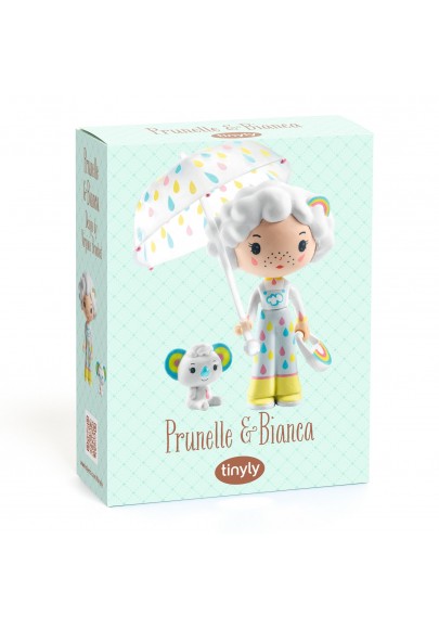 Un parapluie dans une main et un sac arc-en-ciel de l'autre, Prunelle aime se promener sous la pluie accompagnée de son inséparable compagnon, Bianca le panda. Tinyly, un univers poétique, de jolies figurines aux traits délicats et aux couleurs douces qu’on expose, qu’on collectionne ou qu’on place au cœur d’histoires et de fabuleuses aventures !