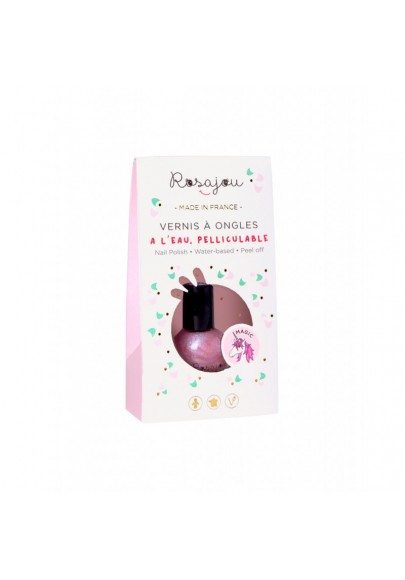 Un vernis pour enfant de couleur rose avec des nacres colorés afin d'avoir une manucure aux reflets pailletés et colorés.