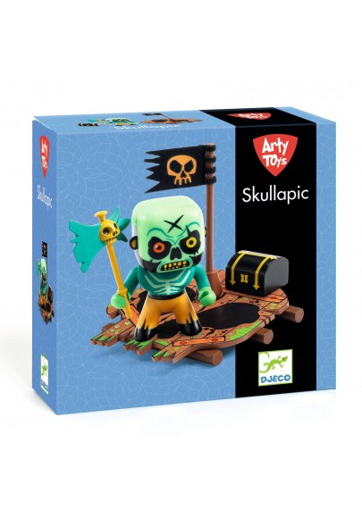 Skull est un pirate redoutable défiant tempêtes et les immenses vagues. Rien ne l'arrête, il reste debout sur son radeau et protège son trésor coûte que coûte. C'est le plus fort ! Inspirées par le courant artistique des Art toys, les figurines Arty Toys sont imaginées par des artistes de tous les horizons : illustrateurs et designers donnent à chaque personnage sa touche d'originalité. Des personnages articulés qu'on expose, qu'on collectionne ou qu'on place au cœur d'histoires et de fabuleuses aventures !