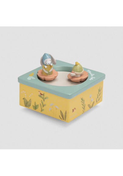 La boîte à musique Trois Petits Lapins de Moulin Roty offre un merveilleux spectacle à votre bébé qui s’amusera à écouter la musique et à regarder danser les petits personnages.