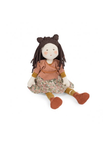 Poupée de chiffon au visage illustré et imprimé, Marjolaine porte un joli cache-cœur assorti à sa jupe fleurie et arbore une ravissante coiffure, mettant en valeur ses longs cheveux. Amie idéale, elle apporte douceur et enchantement à chaque moment de jeu.