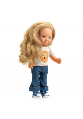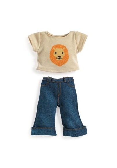 Ensemble qui habillera aussi bien les filles que les garçons. Composé d’un pantalon en toile de jean aux larges revers et d’un t-shirt à manches courtes en jersey couleur ivoire imprimé d’un magnifique lion.