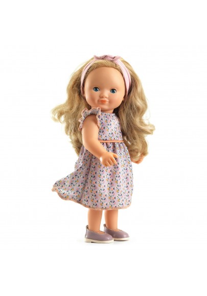 Marie est une poupée mannequin de 32 cm qui tient debout. Ses longs cheveux blonds sont faciles à coiffer. Son visage, ses bras et ses jambes sont en vinyle doux au toucher. Elle ferme ses jolis yeux bleus quand on la couche sur le dos. Elle est habillée d’une robe au motif fleuri. Elle est coiffée d’un bandeau assorti et est chaussée d’une paire de ballerines couleur parme. Cette poupée deviendra vite la nouvelle amie des enfants.