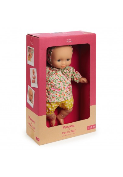 Avec ses beaux yeux marron et sa tenue chic et estivale, Baby Flora Petit Pan est une poupée pour les enfants dès 18 mois. Elle est légère et sa taille (32 cm) est parfaitement adaptée aux petits bras. Son corps souple est imprimé d'un joli body et permet de la positionner comme un vrai bébé. Son visage, ses bras et ses jambes sont en vinyle très doux, agréable au toucher. Avec ses yeux dormeurs, elle s'endort quand on la couche sur le dos. Ce poupon est habillé d'un bloomer, d'une chemise et d'un béguin en coton.