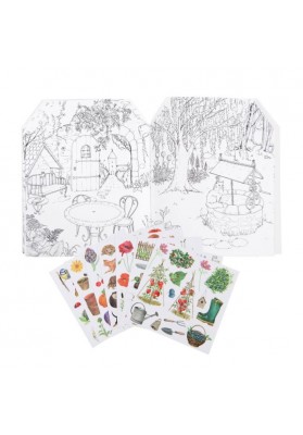 Cahier de coloriage avec 120 stickers sur le thème d’une promenade au jardin. Déambuler entre le potager, la mare ou le verger pour observer et colorier la vie au jardin, puis ajouter des couleurs et encore plus de fleurs avec les stickers !
