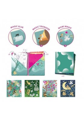 Ce kit propose de décorer 12 cartes illustrées avec des patchs de colle et des feuilles métallisées aux couleurs chatoyantes. L’enfant choisit un patch de colle et l’applique sur la carte de son choix. Il choisit une feuille métallisée, puis la dépose sur le patch collant. La forme du patch est alors révélée en couleurs ! Ce coffret fait partie de la gamme Artistic Patch proposant différentes textures à coller pour varier les plaisirs !