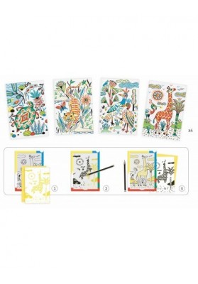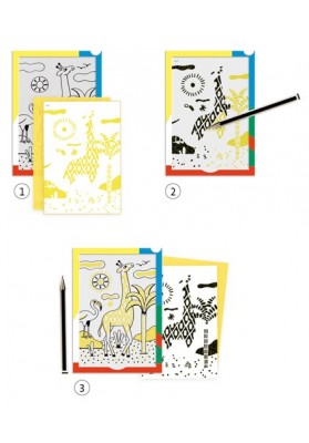 Ce coffret permet aux enfants de réaliser 4 tableaux d'animaux en dupliquant des motifs comme par magie.