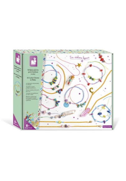Créé tes bijoux en pierres véritables en les choisissant pour leur couleur ou pour leur signification ! Ce kit créatif permet de réaliser 16 bracelets et colliers composés de pierres véritables. Les enfants pourront suivre les étapes détaillées dans le livret pas à pas pour réaliser chaque modèle de bijoux. Mais ils pourront choisir les pierres qu'ils préfèrent, qui colle à leur humeur ou qui leur portera chance ! Chaque pierre correspond à une situation ! Un manque de courage ? On choisit le Lapis Lazuli ! Il est bien sûr possible de les associer pour des bijoux multi-effets ! D'autres accessoires viennent compléter ce coffret pour encore plus de style : des perles, des fioles, des fils colorés... Cette activité créative permet de développer la motricité fine et la créativité et nécessite environ 8h pour réaliser les 16 bijoux. Idéale pour les enfants à partir de 8 ans.