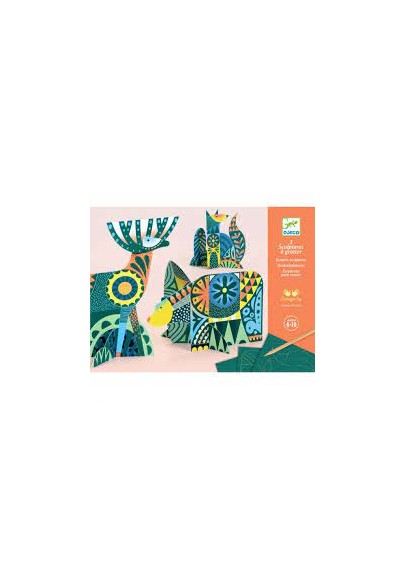 L'enfant gratte la surface des cartes pour révéler les illustrations puis il assemble les socles et les personnages afin de les exposer comme de véritables oeuvres d'art...