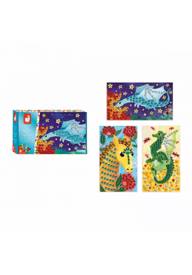 Avis aux petits artistes passionnés de dragons ! Rendez-vous avec les plus beaux spécimens que les enfants devront rendre encore plus impressionnants grâce à des sequins de toutes les couleurs ! Les 3 tableaux de ce kit créatif sont autocollants, ce qui permettra aux enfants à partir de 6 ans de fixer ces perles plates brillantes en suivant les indications du livret. 360 sequins de formes et de couleurs différentes permettront de réaliser de jolis tableaux que les petits aimeront garder en décoration ou offrir ! 20 minutes sont prévues pour terminer un tableau. Grâce à cette activité, l'enfant développe sa dextérité et sa concentration.