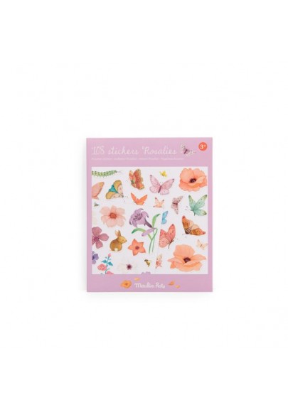 Pochette de 108 stickers repositionnables sur le thème des Rosalies pour créer de jolis décors. Facile à attraper et à décoller pour les premières activités créatives des tout-petits Contient 4 planches. 3 ans et +