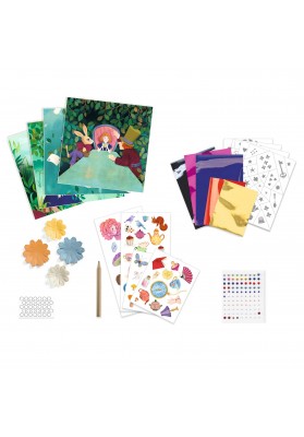 L’enfant vient embellir chaque tableau à l’aide de décalcomanies, de fleurs en papier, de strass autocollants et de motifs à métalliser. Soit 4 fois plus d’activités pour un résultat 4 fois plus épatant !