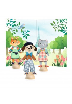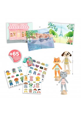 Une activité de collage pour habiller 3 adorables personnages en bois avec plus de 45 habits, à coller et recoller selon ses envies ! Il n’y a plus qu’à inventer les plus belles histoires grâce aux trois décors.