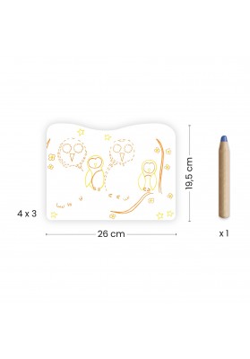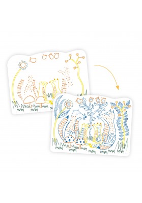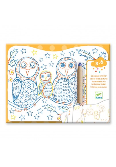 Une pochette de 12 images à colorier avec un gros crayon de couleur, adapté pour les petits enfants. L’enfant colorie les familles d’animaux à l’aide du crayon pour découvrir ce qui se cache. C’est magique : le crayon ne marque que sur certaines zones, des motifs apparaissent et révèlent des surprises !