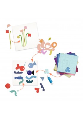 Une activité de collage pour décorer de jolis fonds avec de nombreuses formes colorées (42 couleurs). Les petits s'amusent et apprennent la subtilité des couleurs.