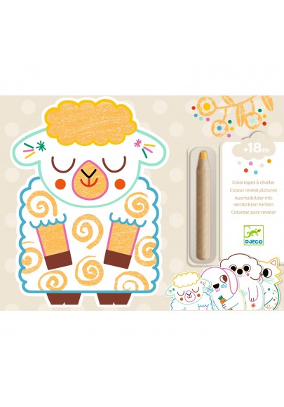 Une pochette de 12 images à colorier avec un gros crayon de couleur, adapté pour les petits enfants. L'enfant colorie les animaux familiers à l'aide du crayon pour découvrir ce qui se cache. C'est magique : le crayon ne marque que sur certaines zones, des motifs apparaissent et révèlent des surprises !