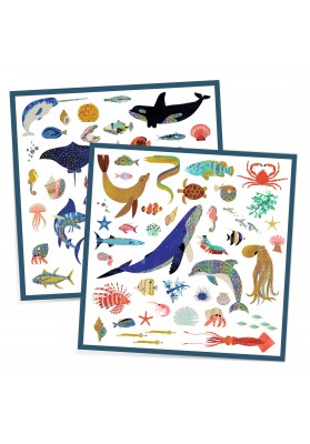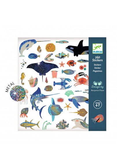 Une pochette de 160 stickers métallisés sur le thème de l’océan. Espadon, bernard-l’hermite, poisson-lune, hippocampe… Autant d’animaux variés et brillants de la faune sous-marine à découvrir ! L’enfant colle les nombreux stickers librement pour composer ses propres saynètes ou décorer ce qu’il souhaite !