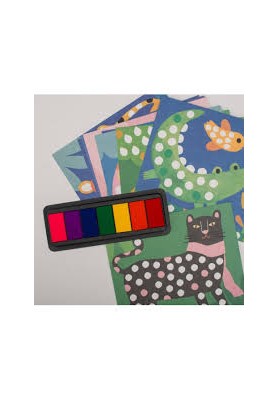 Une manière ludique et sensorielle de s'exprimer avec les doigts ! Utilisez le tampon encreur à 7 couleurs pour peindre les 10 illustrations issues de la collection les Toupitis, avec les doigts. 3 ans et +