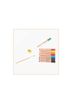 9 crayons de couleur 3 en 1, faciles à prendre en main pour laisser libre cours à son imagination sur les vitres et sur papier. Également aquarellables, ils s'utilisent avec de l'eau et s'effacent facilement. Contient aussi 1 pinceau et 1 taille-crayon.
