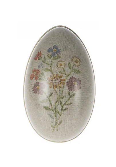 En métal peint, ce petit oeuf s’orne d’un joli bouquet de fleurs brodées. A garnir de petites surprises que ce soit pour la chasse aux oeufs de Pâques ou pour décorer votre table d’anniversaire ou de baptême. 11cm
