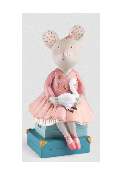 Une jolie tirelire en résine, dessinée à la main, à l'effigie de la petite souris et de son ami le cygne. Elle gardera précieusement tous les petits trésors qu'on lui confie. Un joli accessoire déco qui trouvera aisément sa place dans la chambre d'enfant. 17.5cm