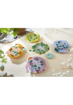 Chaque enfant doit nourrir son gourmand éléphant en couvrant chaque case de son ventre d’au moins une feuille. Tour après tour, choisissez entre deux plaquettes de feuilles d’aliment celle qui remplira le mieux le ventre de votre éléphant. Celui qui réussit à remplir complètement le ventre de son éléphant a gagné !