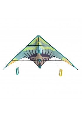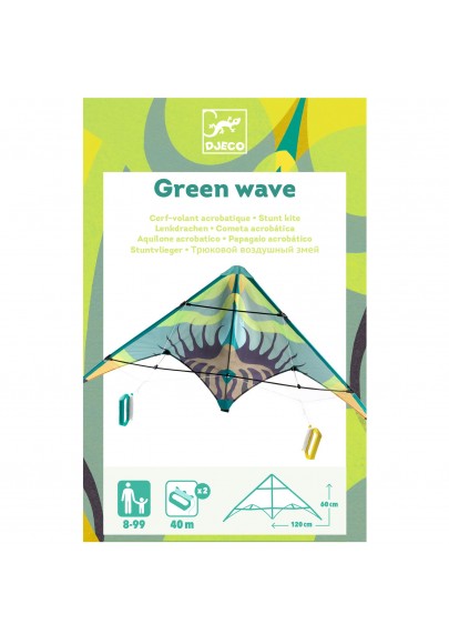 Green Wave est un cerf-volant pilotable grâce à ses 2 lignes. Il permet de s'initier au déplacement dans les airs et au plaisir de découvrir de premières figures acrobatiques. Dimension : 120 x 60 cm.