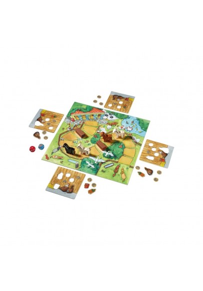 Les chevaux ont passé une belle journée dans le pré, mais ils doivent rentrer à la ferme. Dans leur box, ils doivent trouver différentes choses, comme une botte de carotte ou le sac d'avoine. C'est toi de les récupérer sur le chemin menant à l'écurie. Celui qui choisira les bons dés en route (et aura un peu de chance aussi !) emmènera en premier son cheval au box.3 - 12 ans