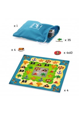 Hissez haut matelot ! Qui sera le 1er pirate à retrouver le chemin de son trésor caché au milieu de l’île ?Le joueur qui parvient à reproduire la croix indiquant le lieu de la cachette de son trésor remporte la partie.
