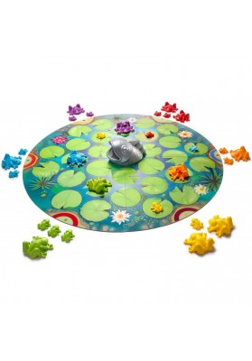Faites traverser l’étang à vos grenouilles tout en empêchant les autres joueurs de faire de même. Le premier joueur qui réussit à amener toute sa famille de l’autre côté remporte la partie. Mais attention, le brochet peut effrayer vos grenouilles et les renvoyer à leur point de départ. Elaborez une stratégie, adaptez-là et n’hésitez pas à gêner vos adversaires!