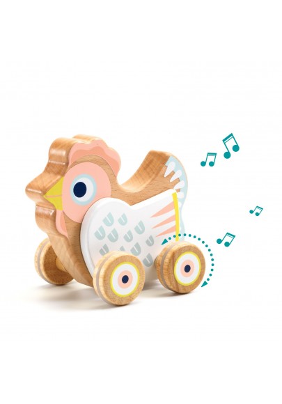 Une petite poule à pousser qui joue une douce mélodie quand elle roule.