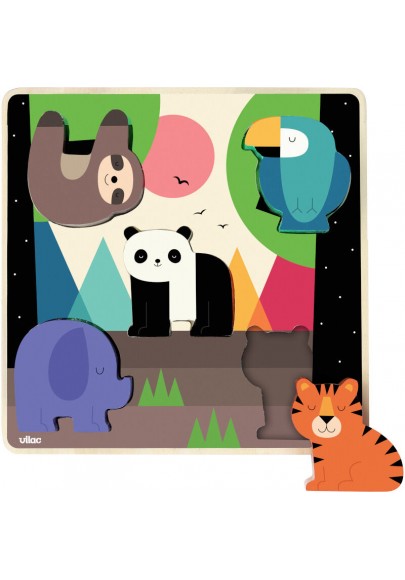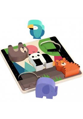 Dans chaque animal se cache un son que les petits dès 18 mois découvrent en secouant les pièces. Tchic, tchac, gling, un grelot, du sable, une bille... Chaque bruit est différent et chaque animal a une place bien spécifique.