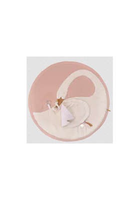 Tapis rond molletonné composé de tissus en lin et coton, certifiés OEKO-TEX®, avec de nombreuses activités pour stimuler bébé. Décoré d'un cygne et son petit, il propose des jeux de matières, des sons à découvrir… 100cm