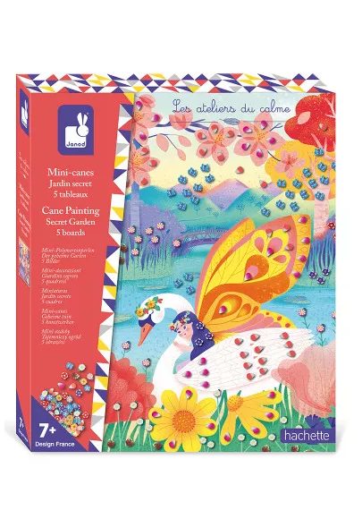 Entrez dans un jardin secret ! Grâce à ce coffret créatif, les enfants à partir de 7 ans décorent 5 tableaux avec des mini-canes. Ces petites tranches en pâte polymère en forme de fleurs ou de papillons viennent se coller sur les tableaux pour leur apporter toujours plus de féérie ! Pour cela, les enfants s'aident de la pince fournie et placent les mini-canes sur les tableaux autocollants : une activité qui invite au calme, à la précision et à l'expression créative. Sont inclus dans ce kit créatif : 5 tableaux autocollants, 870 mini-canes rangées dans 5 petites boîtes rondes en plastique transparent et 1 pince. Les instructions et les modèles à reproduire sont également inclus sous forme de livret, ainsi les petits créatifs pourront décorer leurs tableaux en toute autonomie. Au menu de ces décors merveilleux : une maison champignon, des fées, des animaux fantastiques, un arbre magique … Les enfants ajoutent les feuilles et les pétales à la scène et la magie du jardin secret prend vie ! Pour décorer chaque tableau proposé dans ce kit de loisir créatif, il faudra compter 30 minutes par illustration. Voilà un kit créatif sucré à souhait !