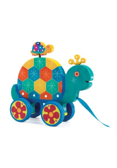 Gaspard est un jouet à traîner en forme de tortue avec son petit copain sur le dos, destiné aux enfants à partir de 18 mois. Il se dandine lorsqu’on le promène en le tirant par son ruban.