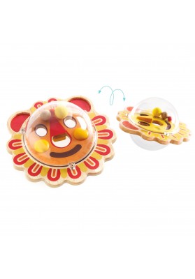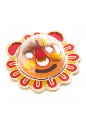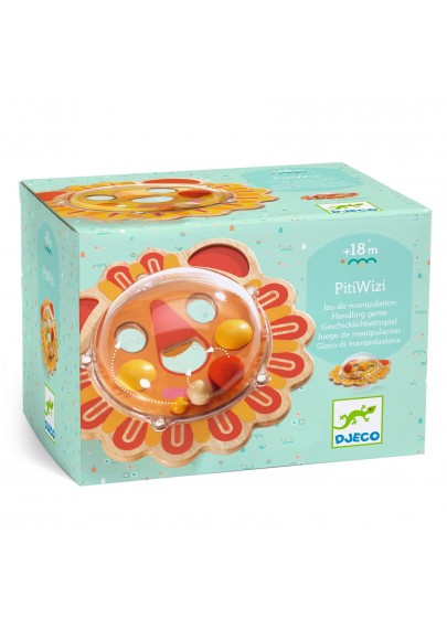 Piti Wizi est un jeu de manipulation pour les petits. Appuyé sur une table, l'enfant fait basculer la balle pour diriger facilement les billes autour des murets et vers le trou afin de les faire disparaître, puis recommence de l'autre côté avec une image différente.