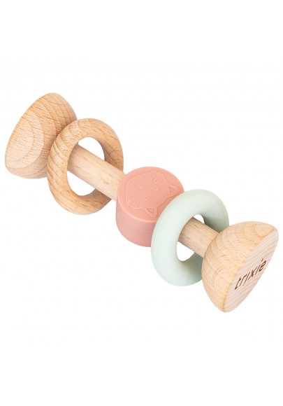 Le hochet bois-silicone de Trixie est spécialement conçu pour tenir parfaitement dans les petites mains de votre nouveau-né. L'animal en silicone aux couleurs vives, aux coins arrondis au milieu et les anneaux stimulent les sens de votre bébé. Le hochet émet un son doux et agréable lorsque votre bébé le secoue, ce qui stimule sa curiosité sans le perturber. De cette manière, votre bébé développe également sa motricité et sa coordination œil-main. De plus, les parties en silicone sont parfaites pour la succion. Cela soulage les gencives douloureuses pendant les poussées dentaires. Mesurant 11 x 4,5 x 4,5 cm, le hochet bois-silicone de Trixie est idéal pour la préhension et l'exploration. Il associe du bois de hêtre certifié FSC et 100 % de silicone, ce qui en fait un hochet durable et sûr.