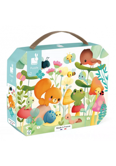 Les petits animaux du jardin s'invitent sur le puzzle de bébé ! Pour les petits dès 2 ans, ce puzzle pour enfant nous plonge dans le monde merveilleux des petites bêtes : abeille, chenille, escargot, coccinelle … Bébé apprend à nommer les adorables animaux représentés sur son puzzle et développe ainsi son vocabulaire tout en s'amusant. Idéal également pour aider l'enfant à développer sa motricité fine, ce puzzle est composé de 20 pièces adaptées à ses petites mains. Pratique, toutes les pièces du puzzle se rangent dans la valisette avec poignée incluse ! Avec son puzzle, bébé s'amuse à jouer à "Cherche et trouve" et saura reconnaître ces petits animaux quand il explore le jardin. Ce puzzle est fabriqué en France et est composé de carton FSC® mixte. Il est décoré avec des encres végétales.