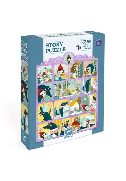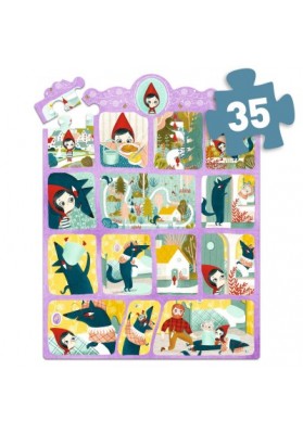 L’enfant reconstitue un puzzle pour découvrir le célèbre conte du Petit Chaperon rouge sous forme d’une BD muette. Ce magnifique puzzle de 35 pièces est présenté dans une jolie boîte.