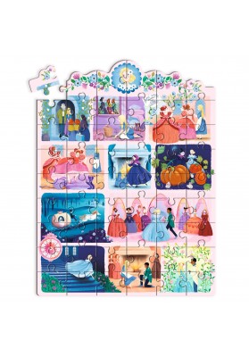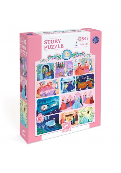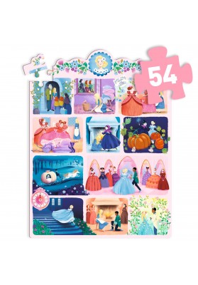 L’enfant reconstitue un puzzle pour découvrir le célèbre conte de Cendrillon sous forme d’une BD muette. Ce magnifique puzzle de 54 pièces est présenté dans une jolie boîte.