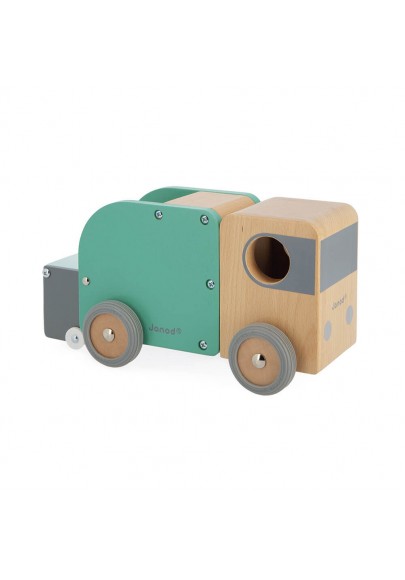 C'est le jour du ramassage des poubelles, avez-vous pensé à sortir la vôtre ? Ce beau camion poubelle en bois massif aidera à sensibiliser votre enfant à l'écologie et au recyclage. Pour plus de réalisme, ce camion vert, gris et bois, est accompagné d'une poubelle aimantée qui bascule pour se vider à l'arrière du camion ! Votre tout-petit, dès 2 ans, pourra ainsi inventer ses propres histoires tout en développant sa motricité fine. Ses dimensions de 21,8 cm de long et de 11,8 cm de haut et ses roues silencieuses en caoutchouc en font un jouet adapté aux petites mains. Ce jouet est fabriqué en bois certifié FSC® et peint à l'eau.